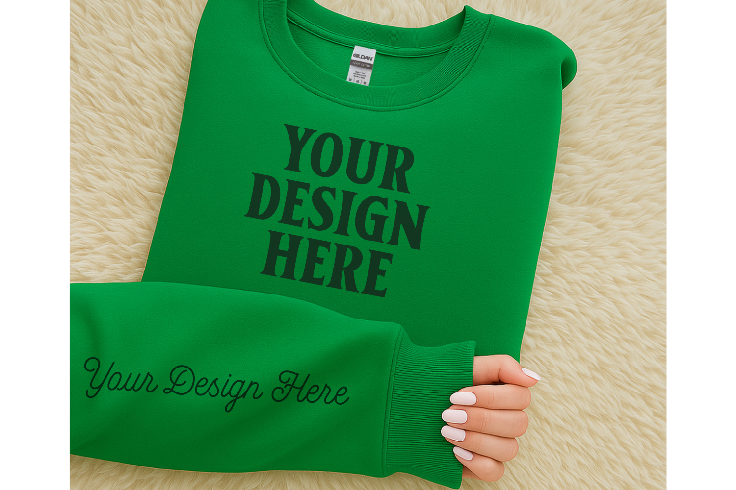 Gildan 18000 Irish Green Sleeve Sweatshirt Mockup