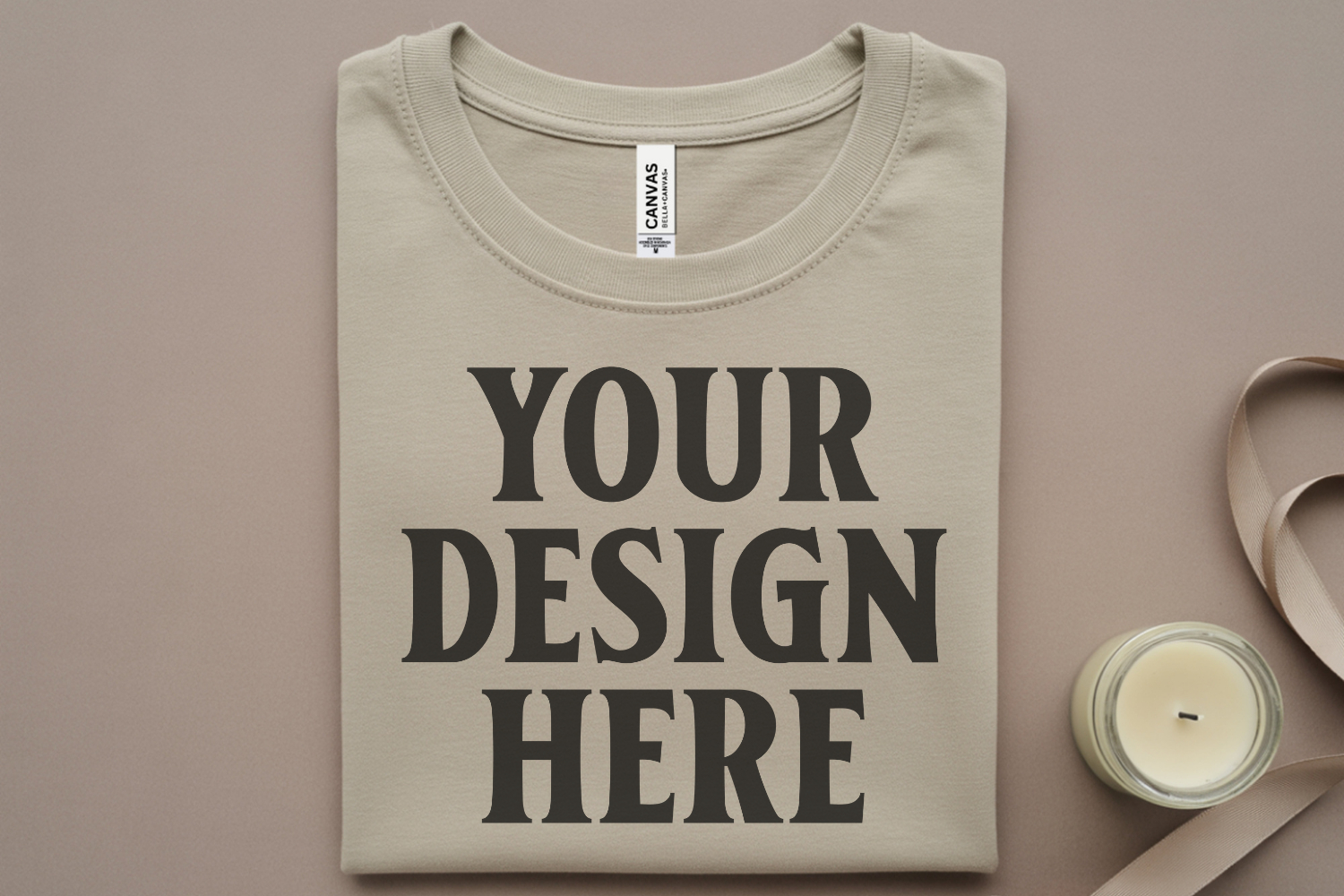 Folded Bella Canvas 3001 Flat Lay T-Shirt Mockup