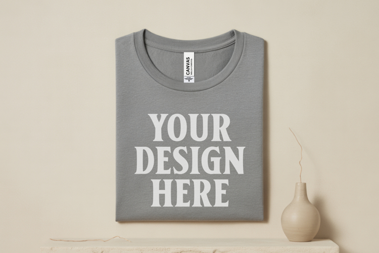 Folded Bella Canvas 3001 Flat Lay T-Shirt Mockup