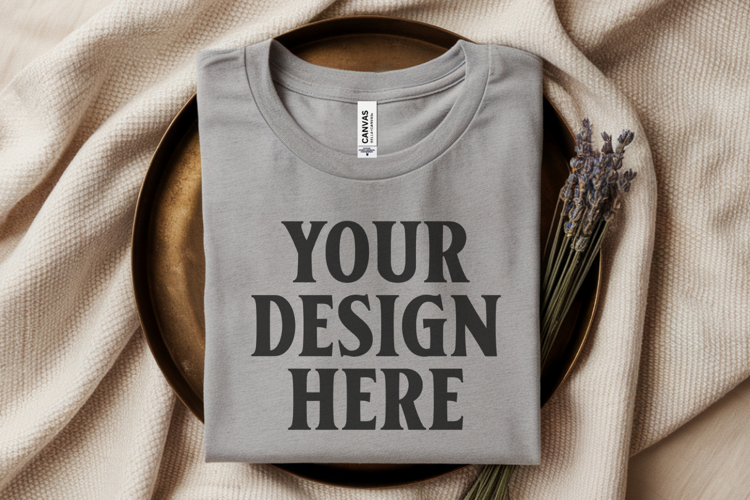 Folded Bella Canvas 3001 Flat Lay T-Shirt Mockup