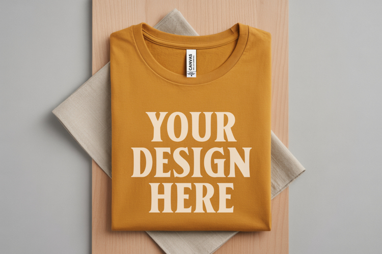 Folded Bella Canvas 3001 Flat Lay T-Shirt Mockup