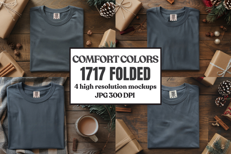 Comfort Colors 1717 Christmas Folded T-Shirt Mockup