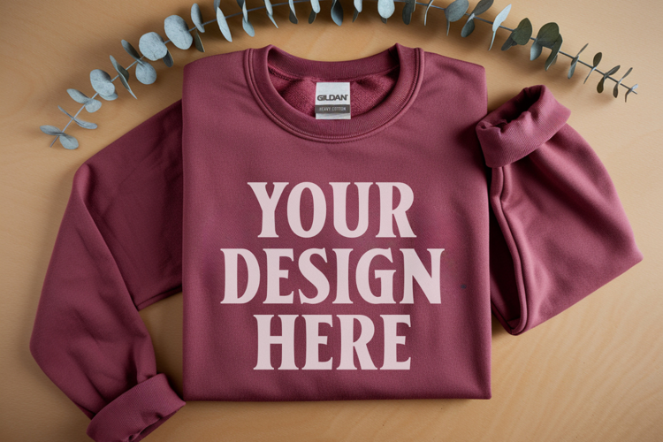 Antique Cherry Gildan 18000 Folded Flat Lay Mockups