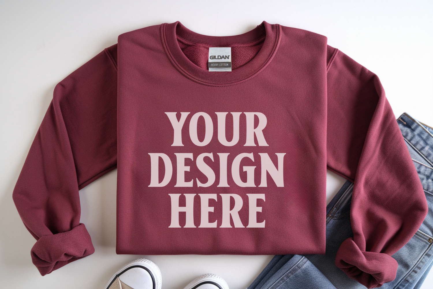 Antique Cherry Gildan 18000 Folded Flat Lay Mockups