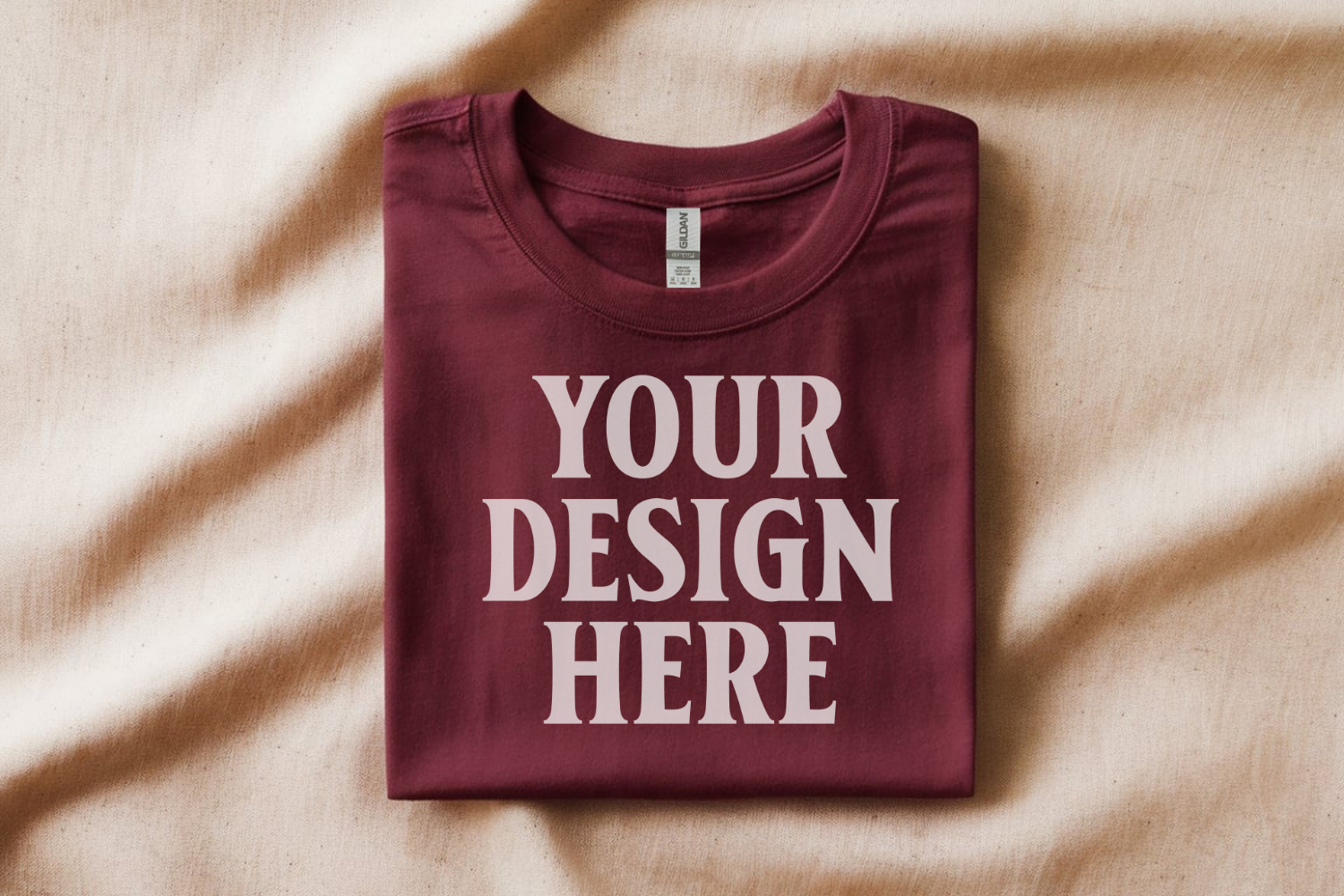 Similar Design Products to Gildan 64000 Maroon Folded Tshirt Mockup