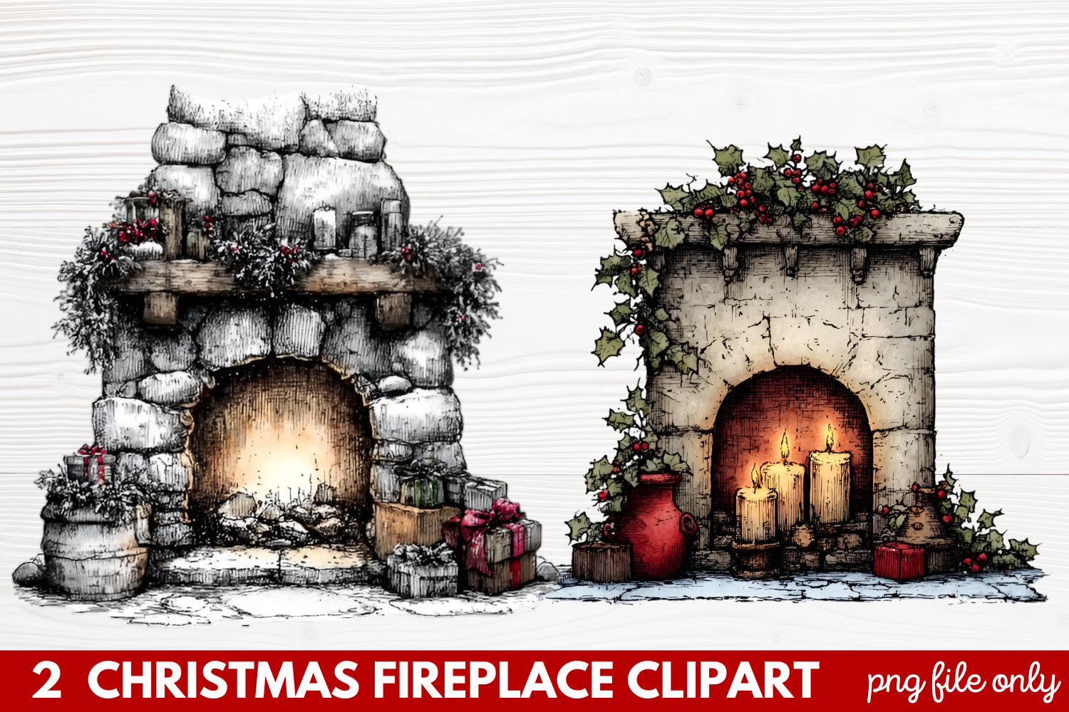 Cozy Christmas Fireplace Clipart | Holiday Mantel & Winter Home Digital PNGs