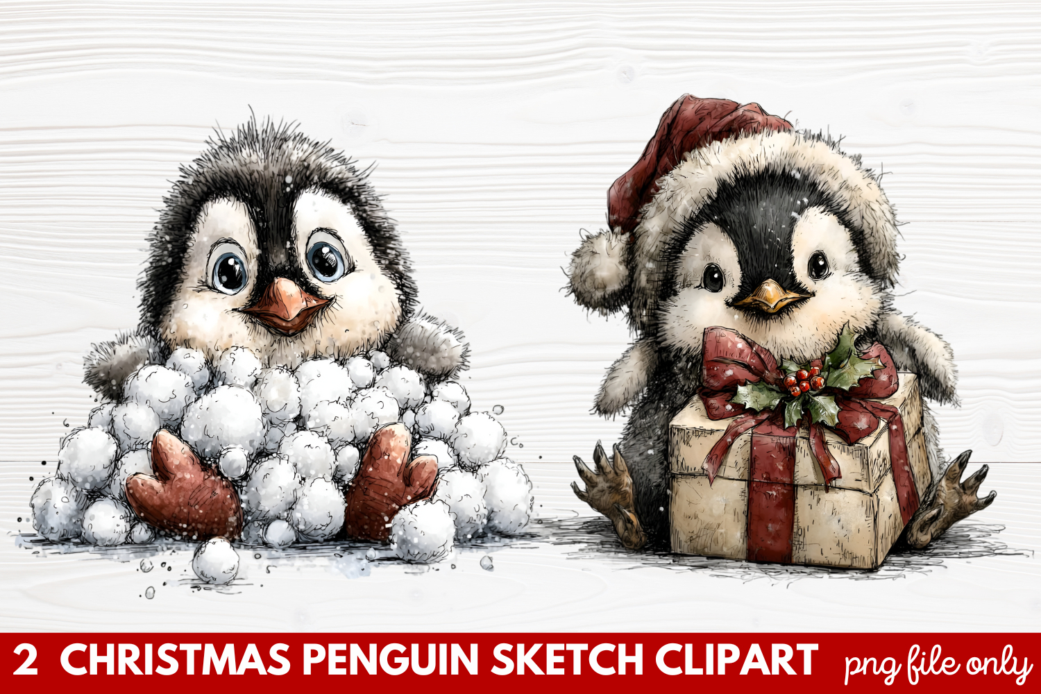 Similar Design Products to Christmas Penguin Sketch Clipart | Hand-Drawn Holiday