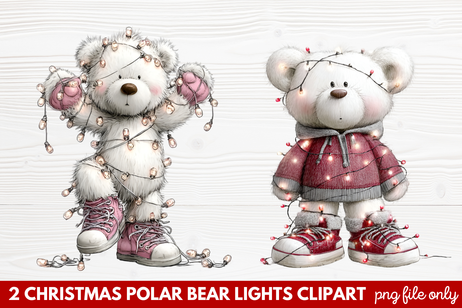 Christmas polar bear clipart, polar bear lights PNG, cute holiday bear illustration, winter bear clipart, festive animal clipart, Christmas lights bear art, Xmas polar bear PNG, adorable Christmas characters, holiday wildlife clipart, Christmas digital download, winter animal illustration, cute festive clipart, Christmas cartoon bear, cozy holiday artwork, polar bear Christmas design, seasonal clipart PNG, Christmas craft graphics, winter clipart bundle, holiday decor illustration, festive character clipart.