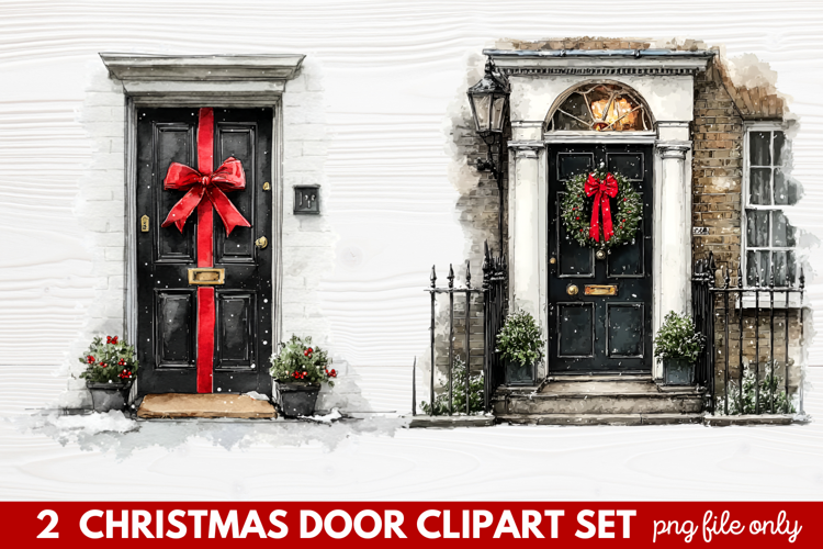 2 Christmas Door Clipart Set | Festive Holiday Front Door
