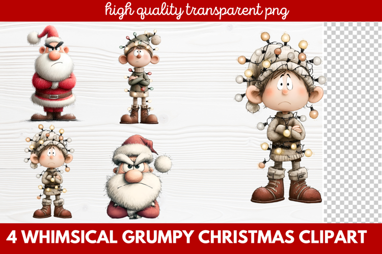 4 Whimsical Grumpy Christmas Clipart | Funny Grumpy Holiday example image 1