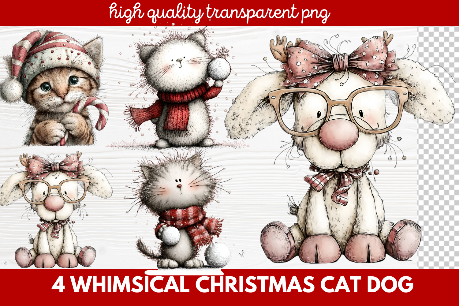 Whimsical Christmas Cat & Dog Clipart | Cute Holiday Pet PNG Set for Crafts & Digital Designs
