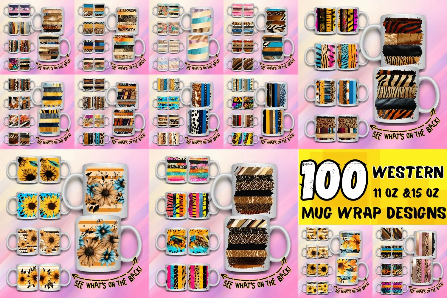 100 Western Mug Wrap Bundle, Leopard Sublimation, Sunflower example image 1