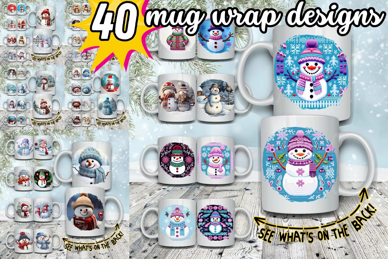 40 Snowman Mug Wrap Bundle, Christmas Sublimation PNG, Santa example image 1