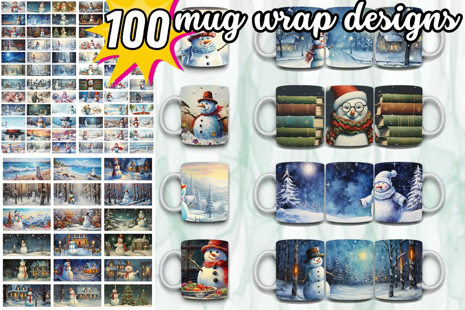 100 Snowman Mug Wrap Bundle, Christmas Sublimation PNG, Holy