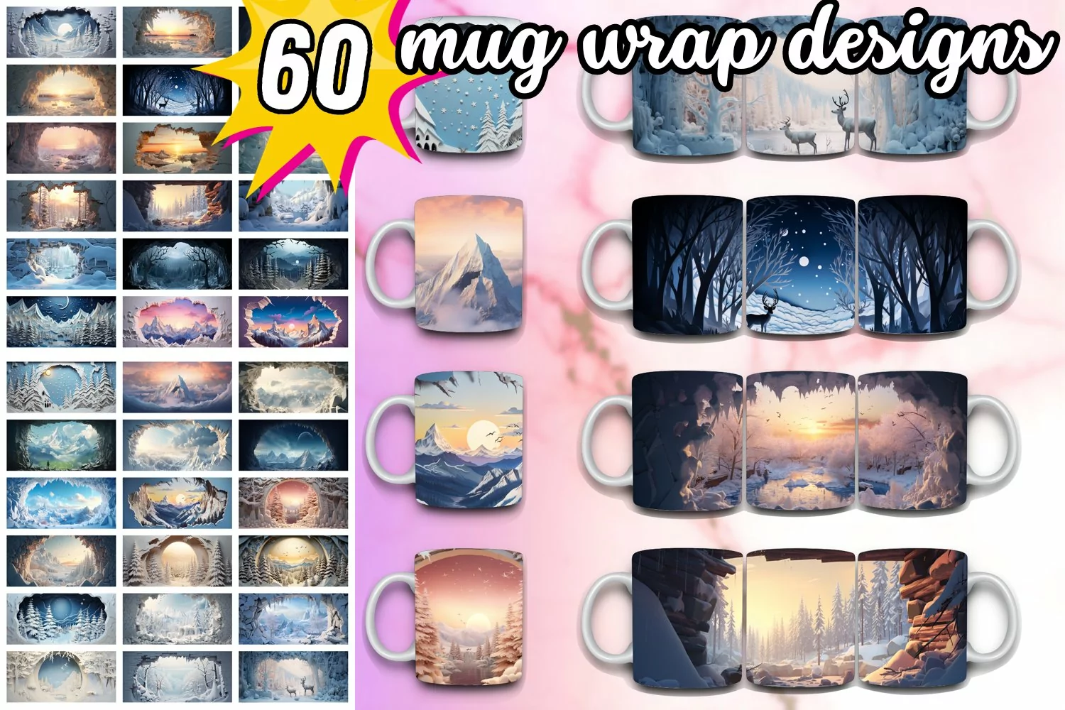 60 Winter Mug Wrap Bundle, Christmas PNG, Hole In Wall