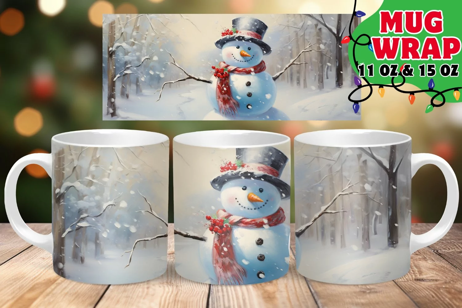 Similar Design Products to Christmas Watercolor Mug Wrap PNG, Snowman, Winter Mug Wrap