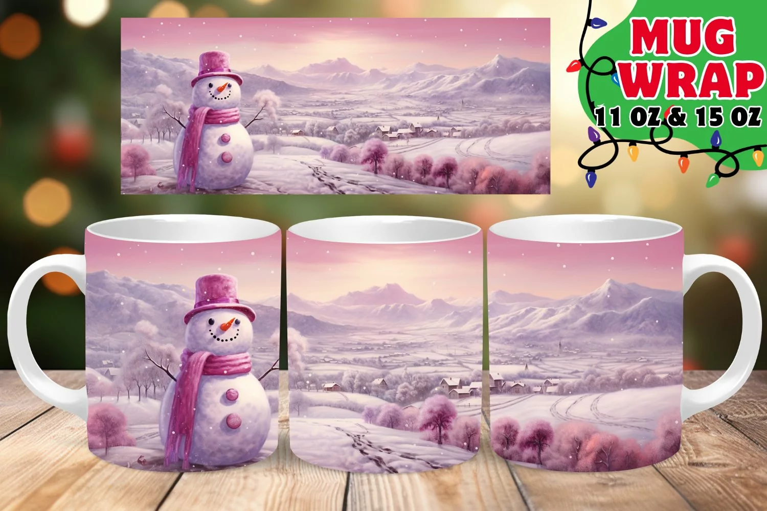 Similar Design Products to Pink Christmas Watercolor Mug Wrap PNG, Snowman Sublimation