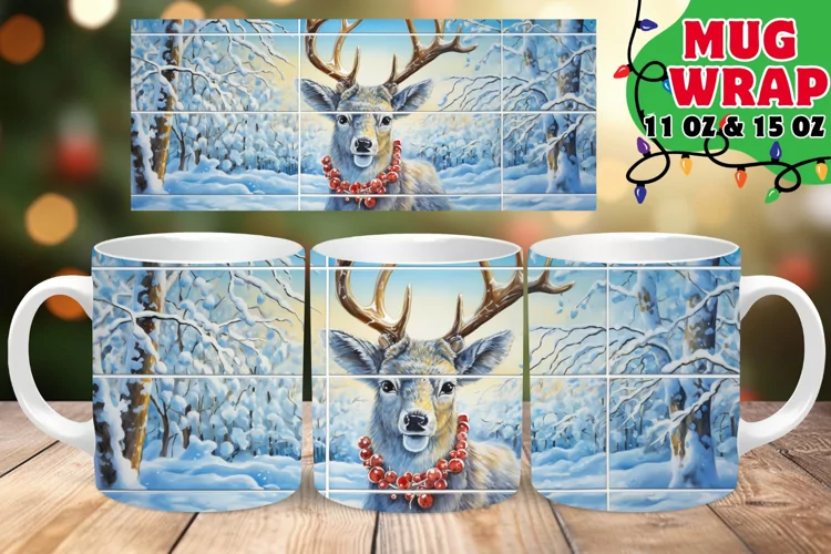 Winter Deer Watercolor Mug Wrap PNG, Holiday Sublimation