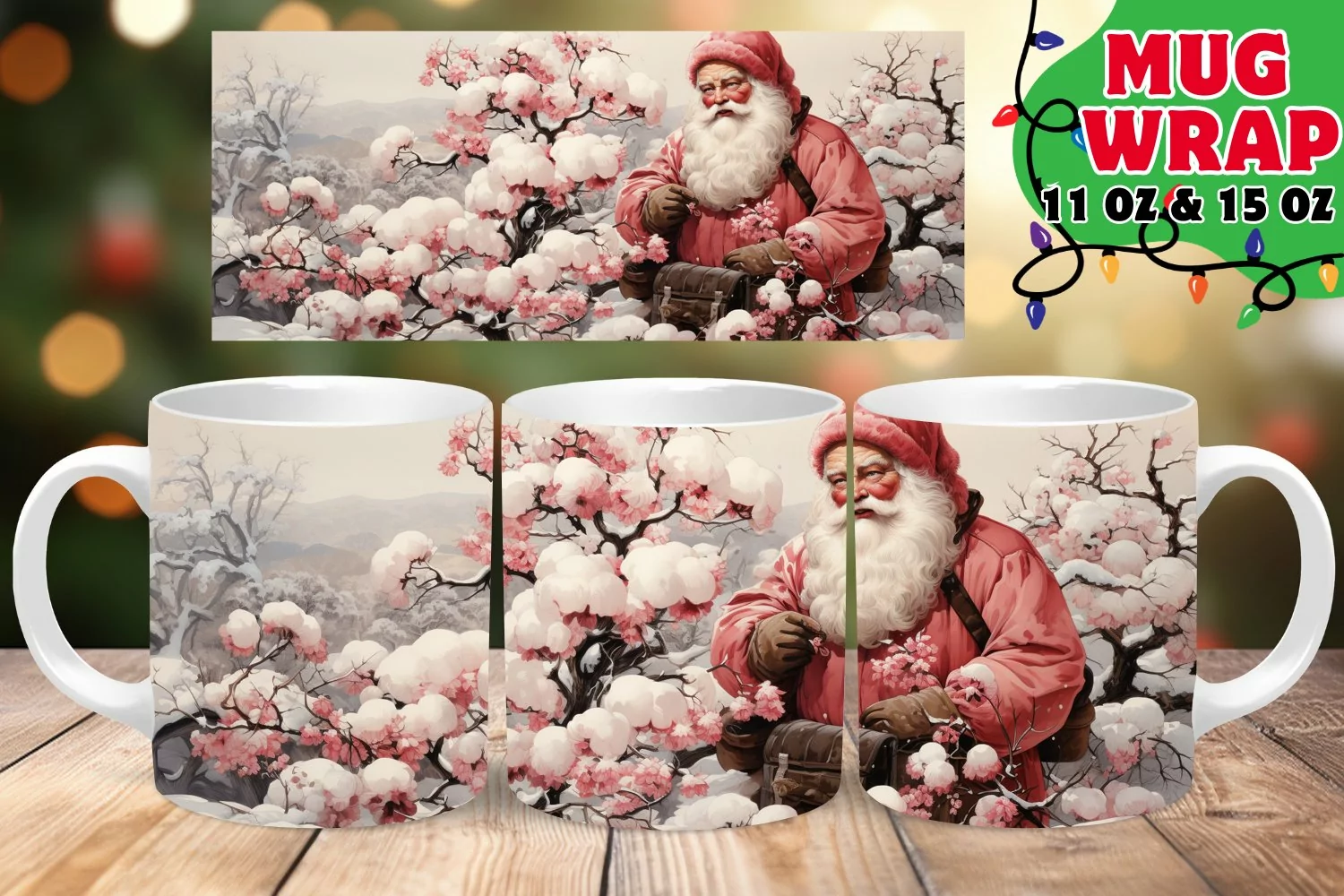 Similar Design Products to Pink Xmas Elegance 11oz 15oz Mug Wrap, Santa Claus