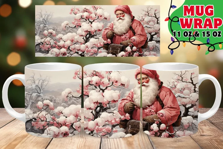 Pink Xmas Elegance 11oz 15oz Mug Wrap, Santa Claus