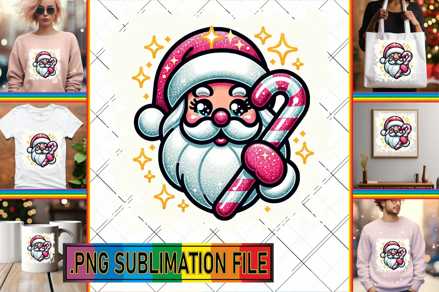 Similar Design Products to Santa Claus Sublimation Magic: Glittery Christmas in 3D PNG