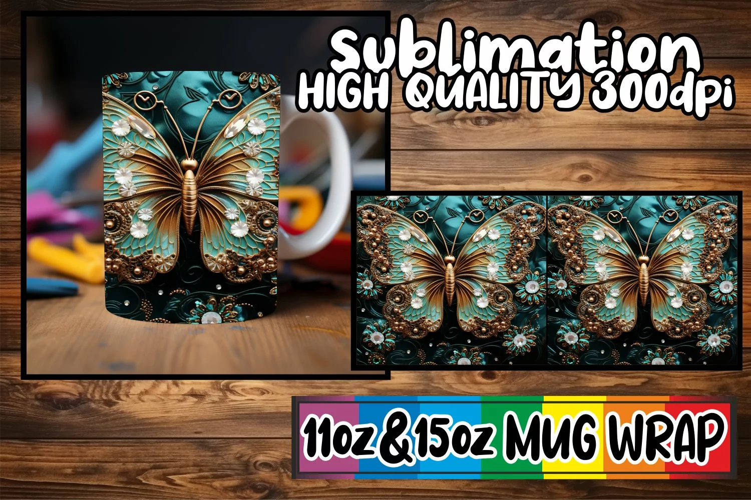Fluttering Fantasy: 3D Butterfly Mug Wrap Sublimation example image 1