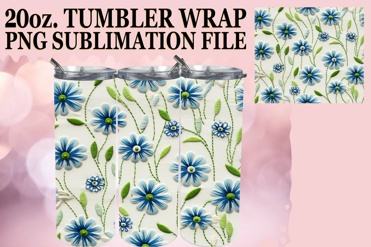 Digital Sublimation File Straight Tumbler Wrap 20oz Tumbler Wrap Watercolor Tumbler Wrap Flower Tumbler Wrap 3d Flower Sublimation Skinny Sublimation Digital Download Embroidered Sublimation Doddle Pattern Png 3d Abstract Pattern