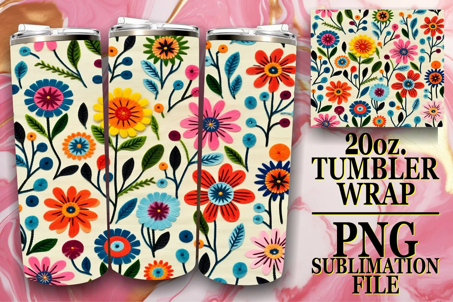 Digital Sublimation File Straight Tumbler Wrap 20oz Tumbler Wrap Watercolor Tumbler Wrap Flower Tumbler Wrap 3d Flower Sublimation Skinny Sublimation Digital Download Embroidered Sublimation Doddle Pattern Png 3d Abstract Pattern