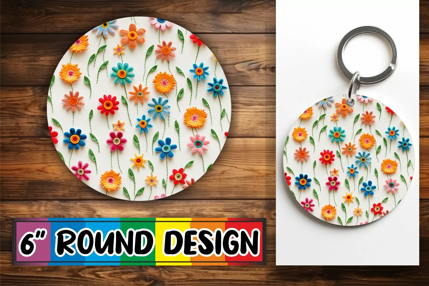 Keychain Sublimation Sublimation Ornaments Valentines Keychain Flower Car Coaster Flower Pattern Keychain Round Ornaments Design Embroidered Png 3d Embroidered Sublimation Doddle Heart Flower Circle Ornaments