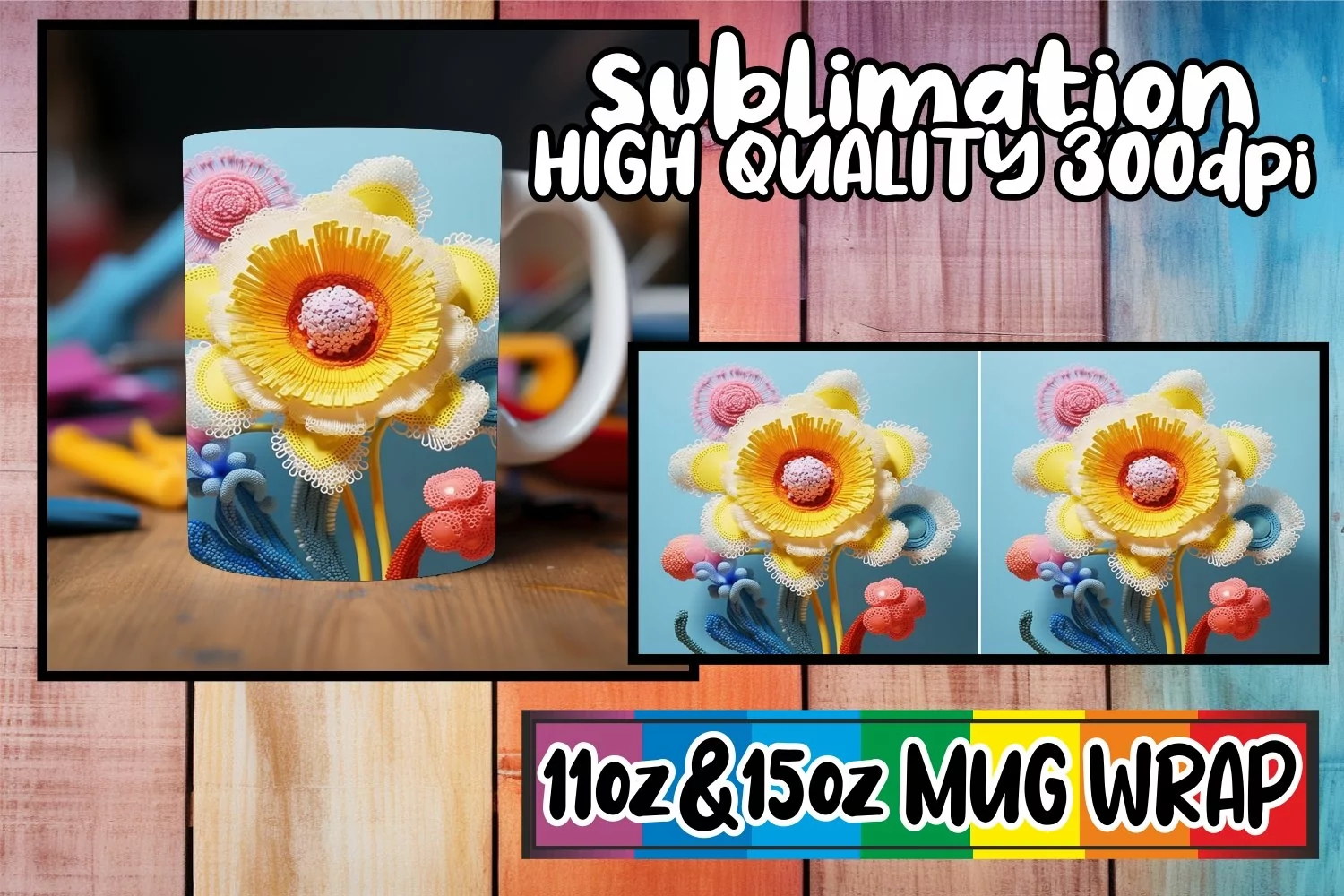 Artistic 3D Flower Pattern Mug - Sublimation 11/15oz