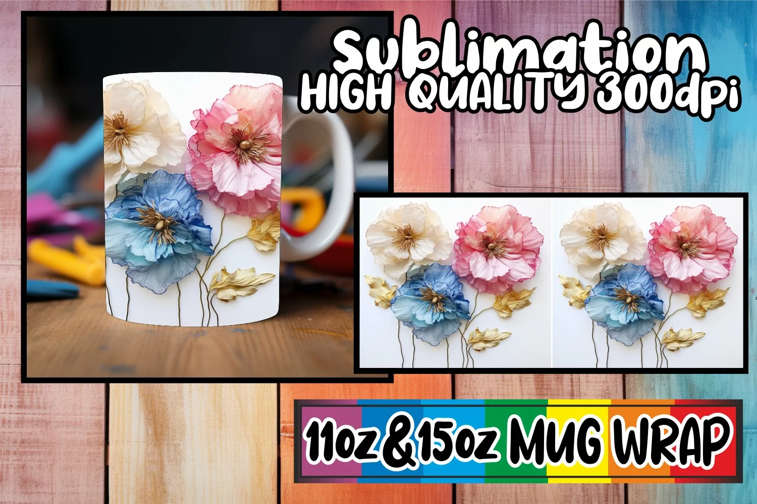 Elegant 3D Flower Sublimation Mug - 11oz/15oz Wrap example image 1