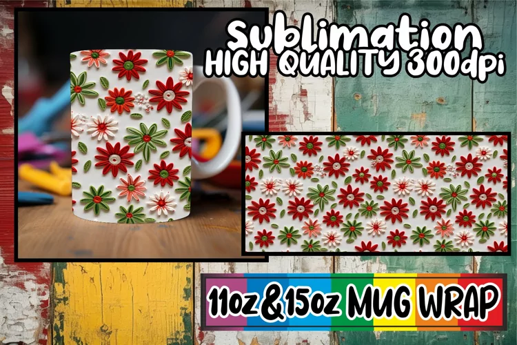 Similar Design Products to Vibrant 3D Flower Embroidery Wrap - 11oz & 15oz Mug