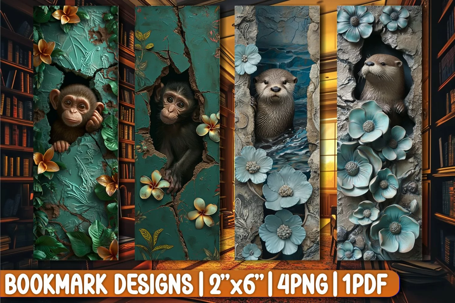 Book Marks Bookmarks Printable Bookmark Bookmark Floral Bookmark Sublimation Bookmarks For Sublimation Bookmark Flowers 3d Animal Png 3d Hole In Wall Sublimation Design Bookmart Png