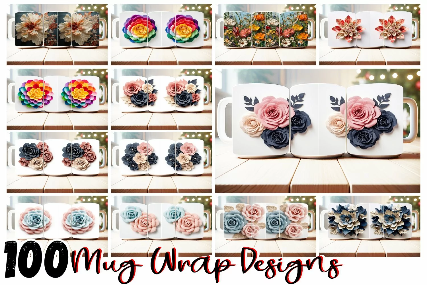 100 Mega Bundle 3D Flower Mug Wrap Designs PNG, Spring PNG