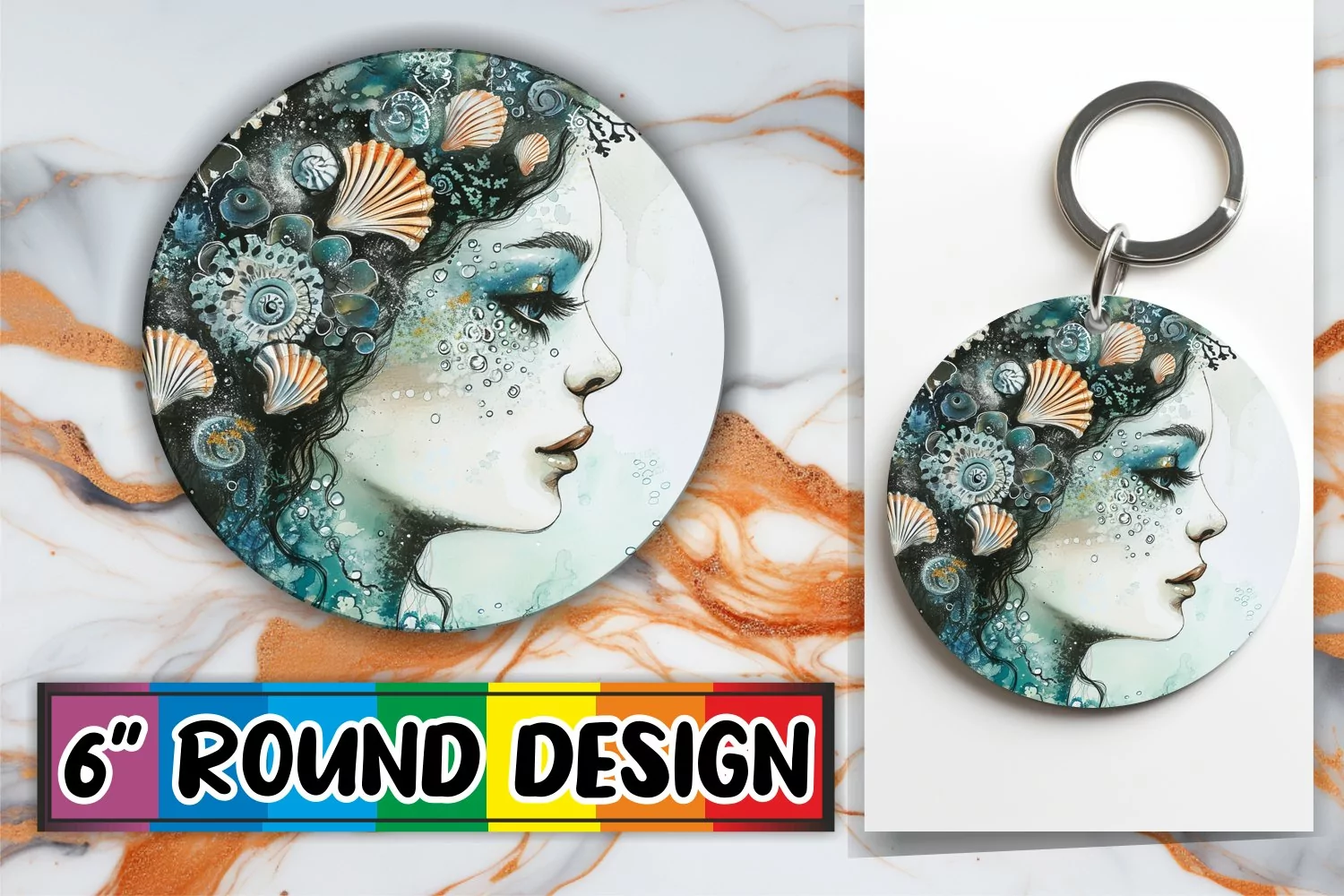 Gift For Her Mermaid Png Sea Png Ocean Sublimation Sublimation Ornaments 3d Mermaid Mermaid Keychain 3d Sublimation Design Watercolor Mermaid Sublimation Round Ornaments Design