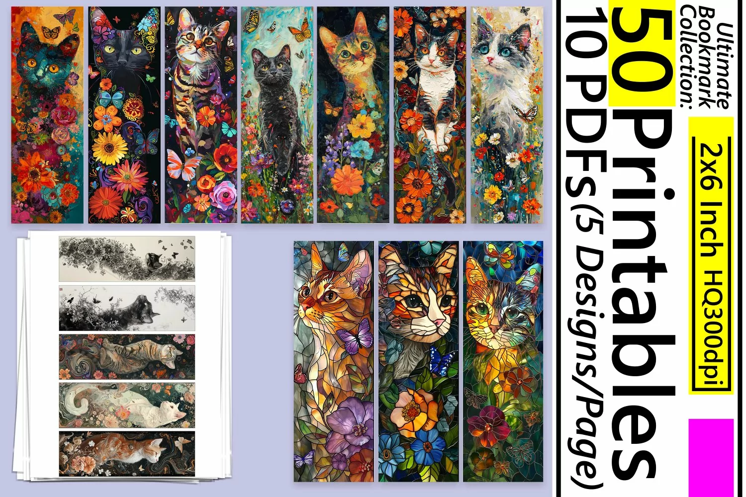 Similar Design Products to 50x Cute Cat Sublimation Bookmark Bundle PNG, Watercolor Cat