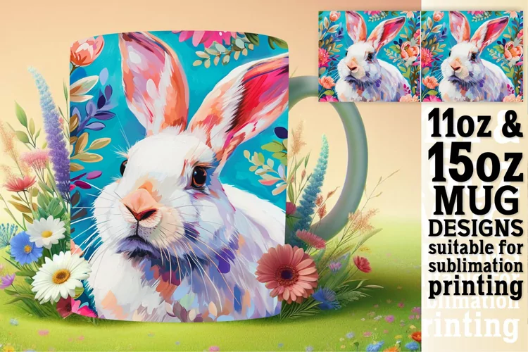 Springtime Bunny Magic: Vibrant Mug Wrap