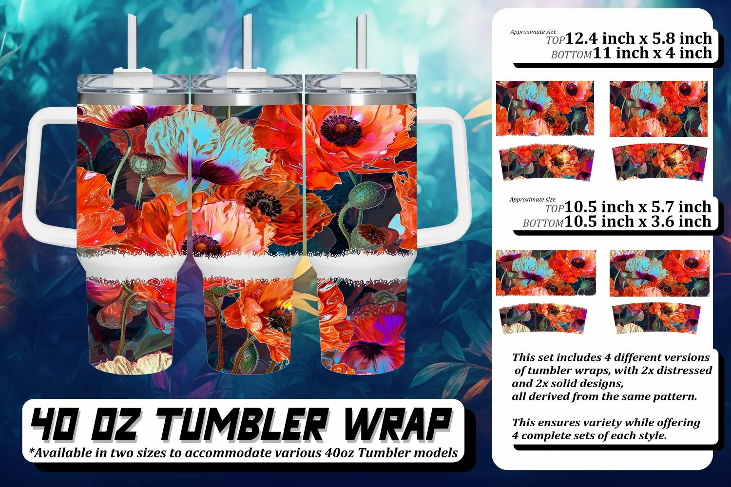 This set includes 4 different versions of tumbler wraps, with 2x distressed and 2x solid design,