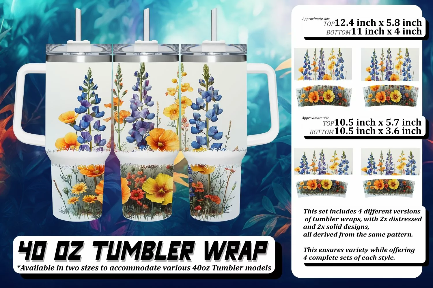 This set includes 4 different versions of tumbler wraps, with 2x distressed and 2x solid design,