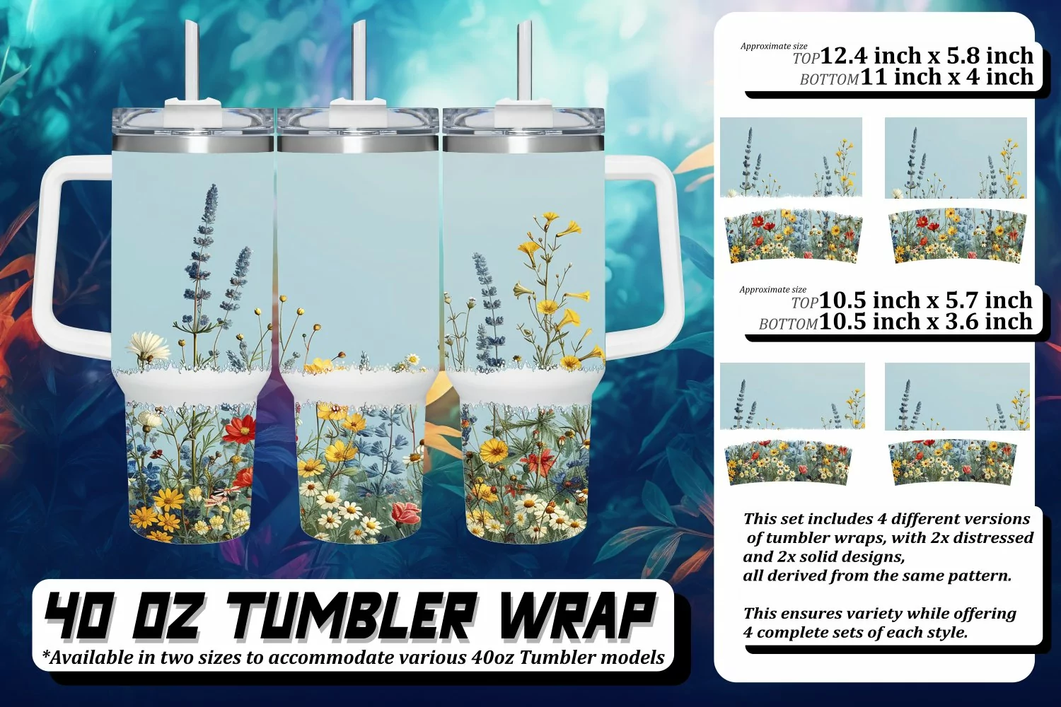 This set includes 4 different versions of tumbler wraps, with 2x distressed and 2x solid design,