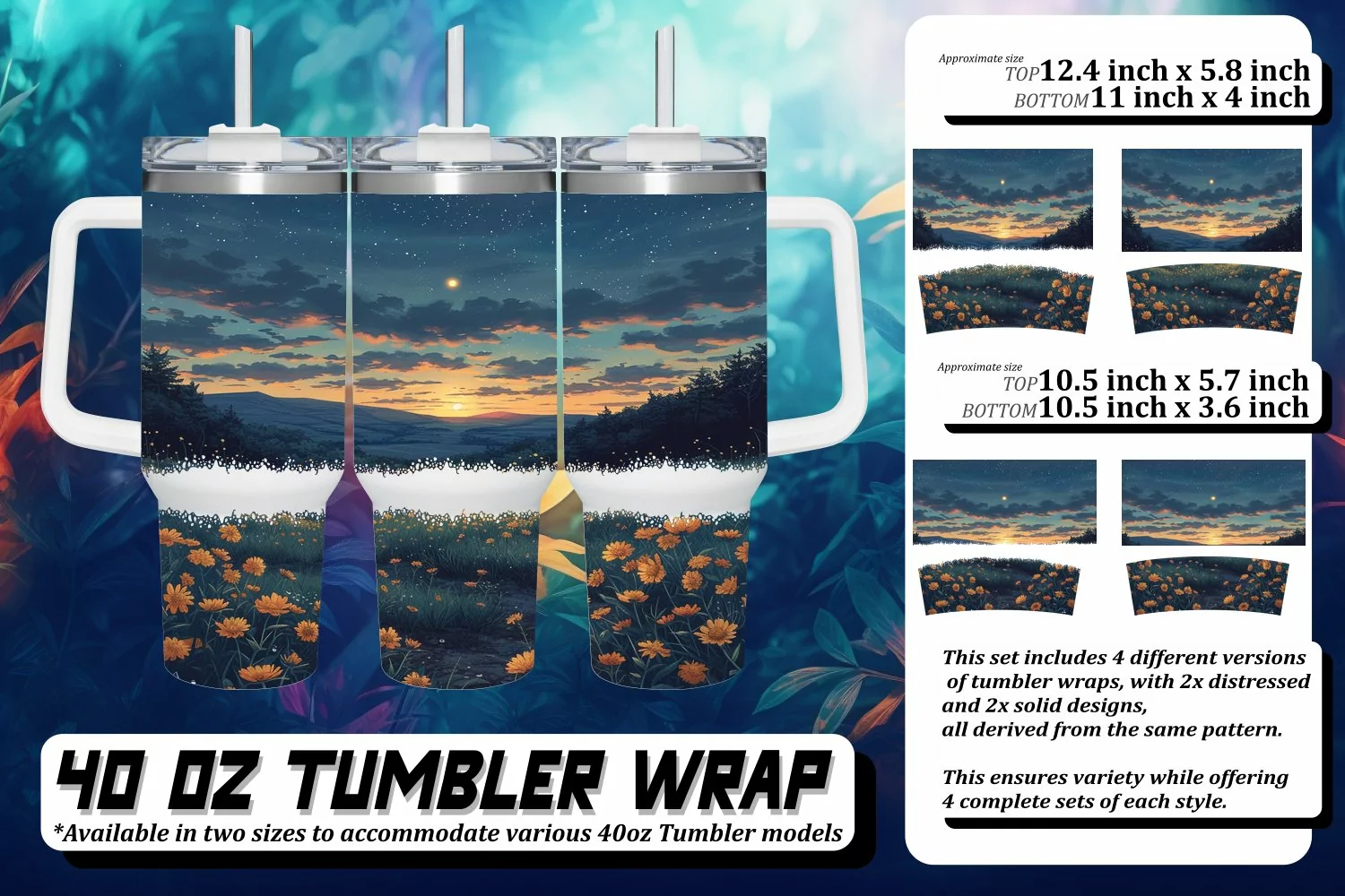 This set includes 4 different versions of tumbler wraps, with 2x distressed and 2x solid design,