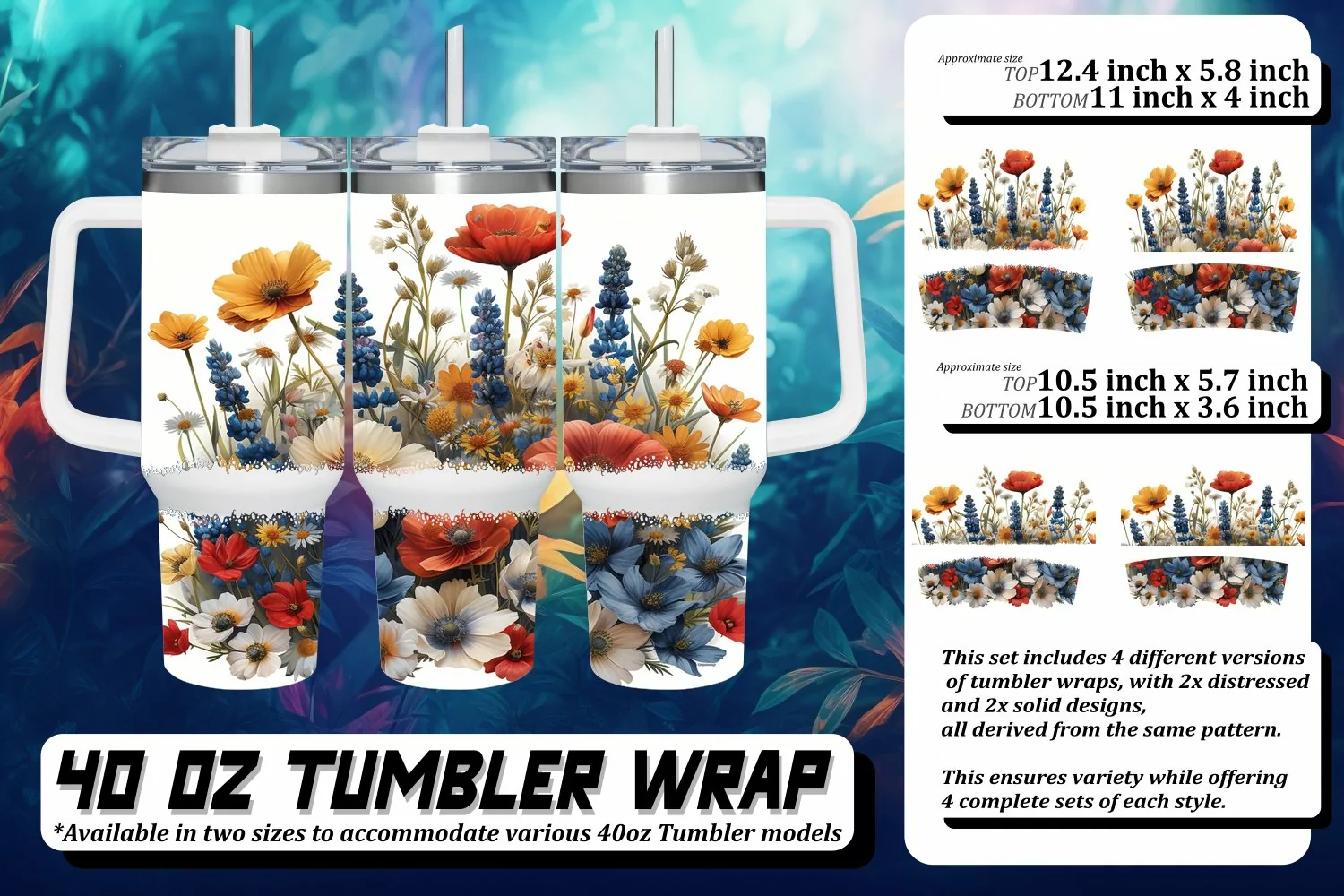 This set includes 4 different versions of tumbler wraps, with 2x distressed and 2x solid design,