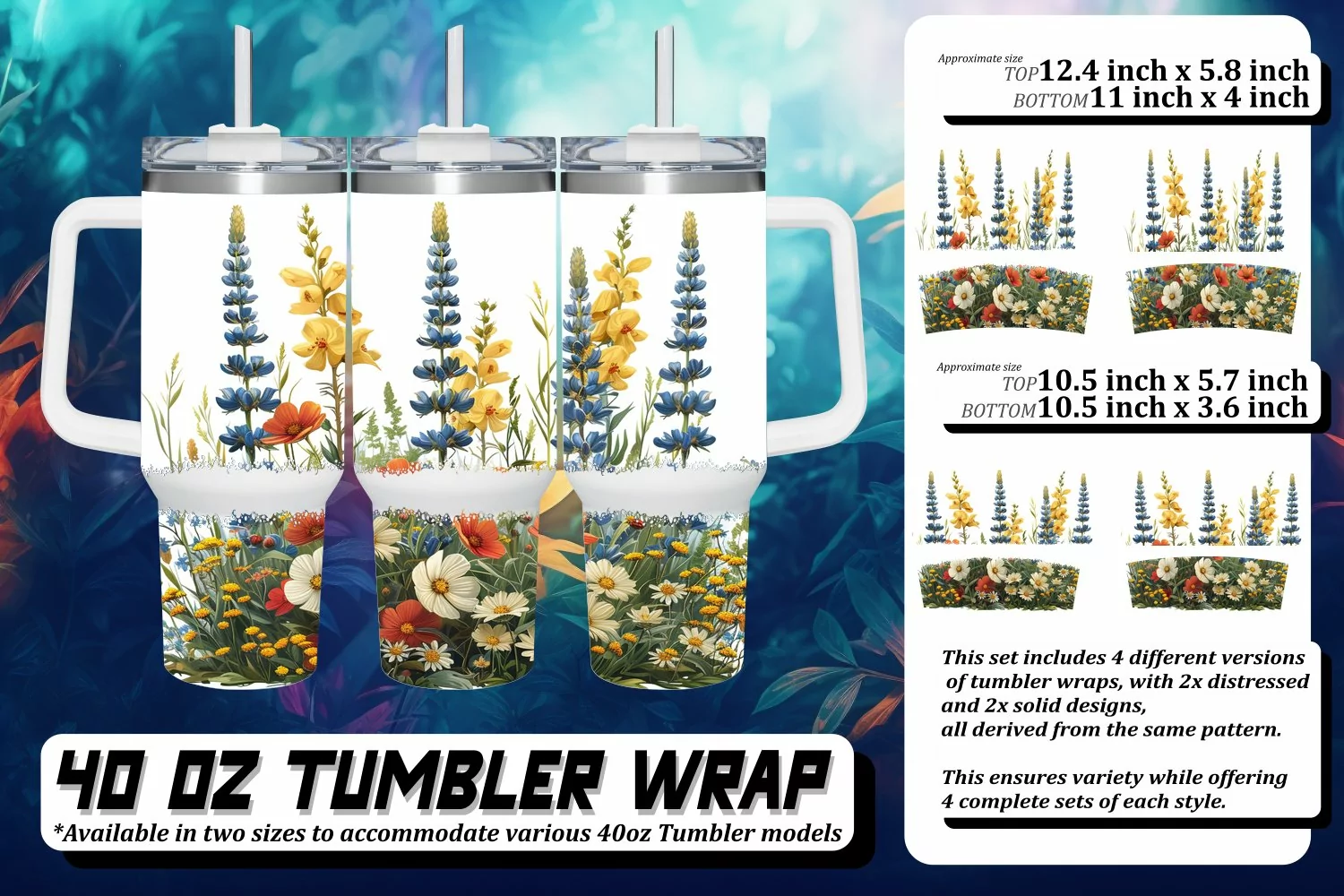 This set includes 4 different versions of tumbler wraps, with 2x distressed and 2x solid design,