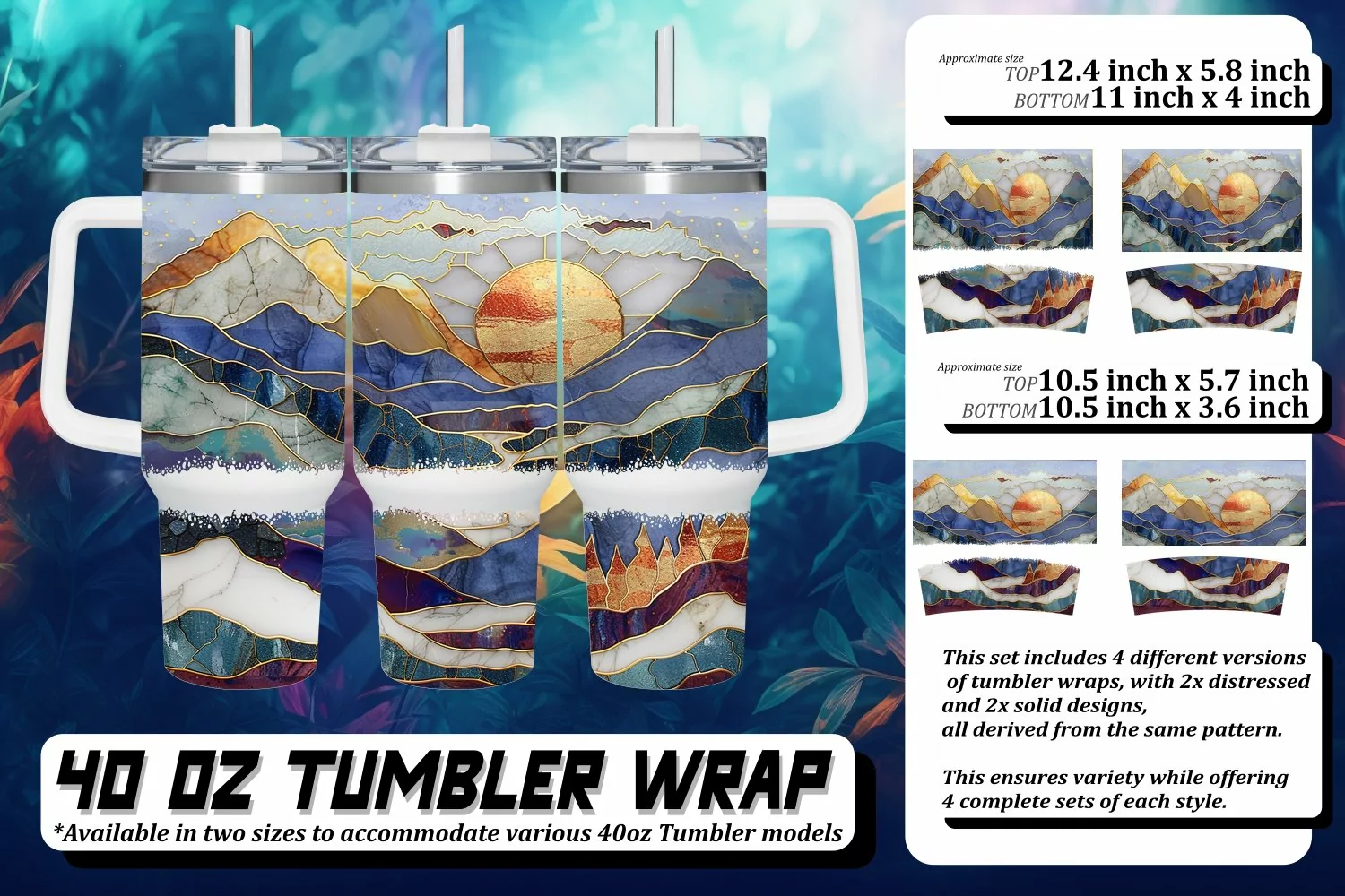 This set includes 4 different versions of tumbler wraps, with 2x distressed and 2x solid design,
