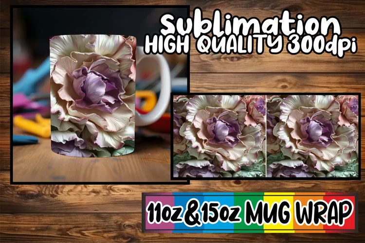 Whimsical 3D Pattern Mug Wrap, Art Sublimation