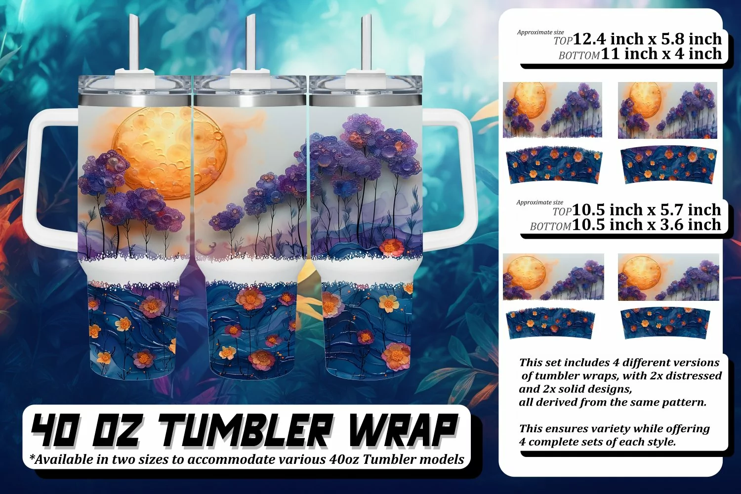 This set includes 4 different versions of tumbler wraps, with 2x distressed and 2x solid design,