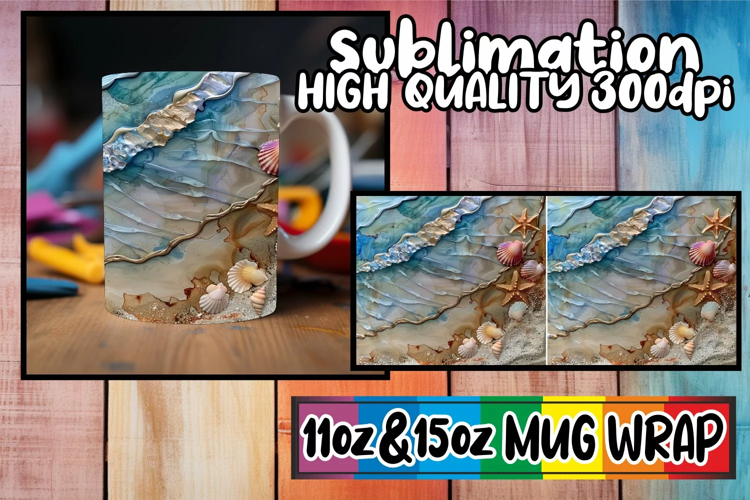 Seaside Splendor Mug Wrap Sublimation, 11oz 15oz