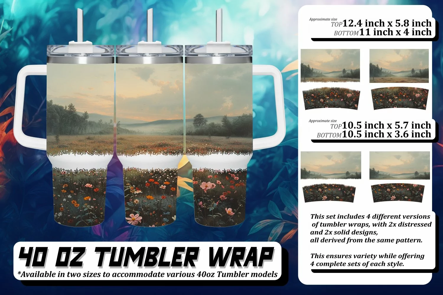 This set includes 4 different versions of tumbler wraps, with 2x distressed and 2x solid design,