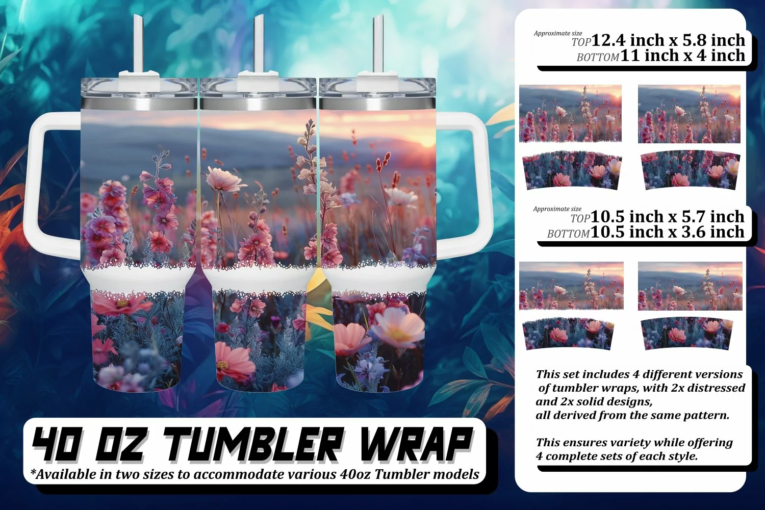 This set includes 4 different versions of tumbler wraps, with 2x distressed and 2x solid design,