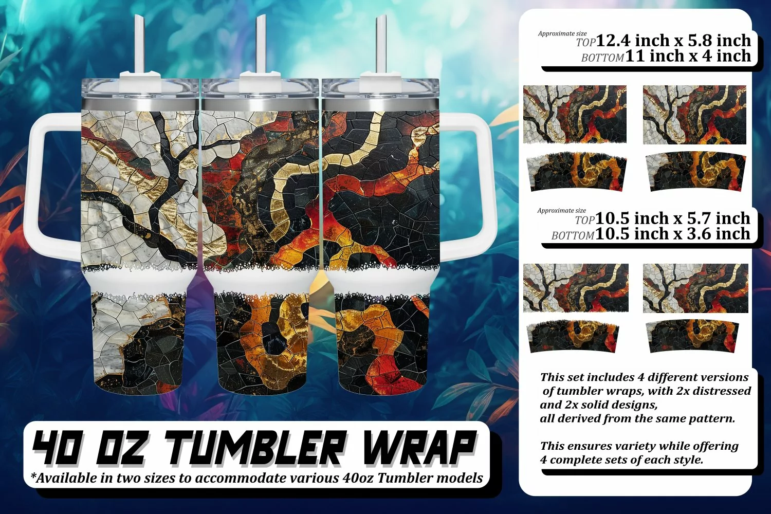This set includes 4 different versions of tumbler wraps, with 2x distressed and 2x solid design,